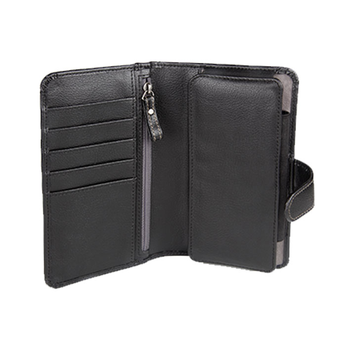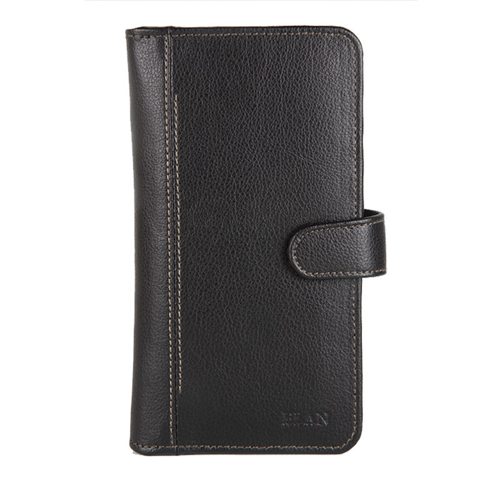 Elan Mobile Wallet Black is a leather wallet which is an ideal corporate gift item to be given to customers and employees. It is of contemporary style and comes in elegant blue colour with a zipper. Elan Mobile Wallet Black is of elegant design with a soft cushioned section to hold the mobile phone. It also has slots to hold 5 cards, 2 multipurpose compartments and a zipper to hold cash. This mobile wallet has a loop snap button closure to ensure the belongings do not fall off. The wallet is 9 x 3 x 17 size. It has a professional look making it an excellent corporate gift.