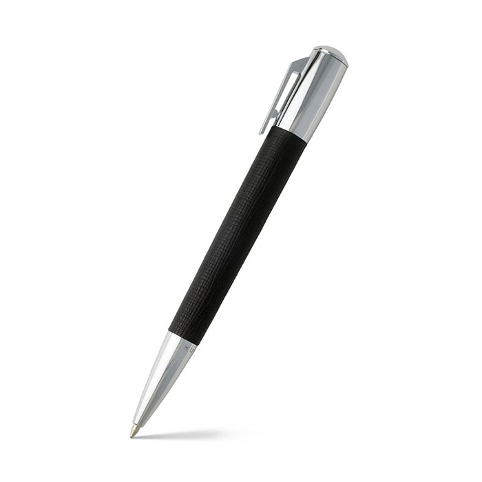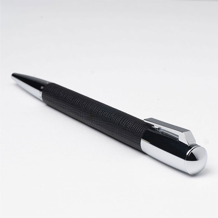 Hugo Boss Pure Black Ball Point Pen can be gifted to your customers and employees on special occasions. It is a high-end product having lacquer and a soft engraved surface. It has an innovative cap ring with the logo of Hugo Boss placed visibly on the cap. This gives the pen a trendy look. Hugo Boss Pure Black Ball Point Pen works with a casual twist mechanism and is lightweight. It is packed in an elegant gift box which can be customised with your company’s logo.